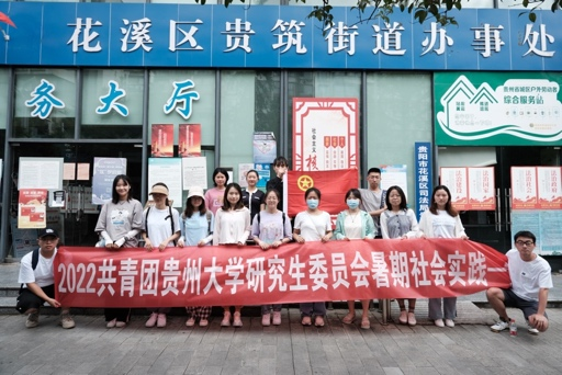 团委网站讯为认真贯彻落实共青团贵州省委关于开展贵州省大学生社区实践的计划,鼓励学生走进社会基层,知国情懂社情,肩负大学生的社会责任与时代使命,充分运用自身所学专业知识,结合基层实践,发挥专业所长服务人民、解决问题,在实践中受教育、长才干、做贡献,共青团贵州大学研究生委员会与花溪区贵筑街道进行社区结对,并在贵州大学党委研究生工作部的组织下,于七月中旬组织开展2022年共青团贵州大学研究生委员会暑期社会实践——贵筑街道社区实践。实践期间,青年团员志愿者们积极开展志愿服务、项目调研、创作拍摄、社区(乡)简报宣传等一系列社会实践活动,将理论与实践相结合,到社区(乡)需要的地方,把才干和知识落到实处,贡献自己的青春力量。