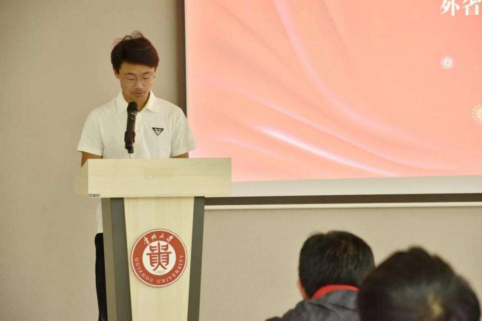 首先,高廷红对2022级54位同学符合学院选拔,获得外省籍茅台奖学金表示祝贺,然后给大家介绍了2021级同学这一年来的学习和学生工作情况。随后,用习近平总书记在党的二十大报告中的一句话“青年强,则国家强。当代中国青年生逢其时,施展才干的舞台无比广阔,实现梦想的前景无比光明。”来鼓励各位同学,在学习上认真努力,思想上积极进取,做一个懂感恩,知奋进,有担当的新时代青年。