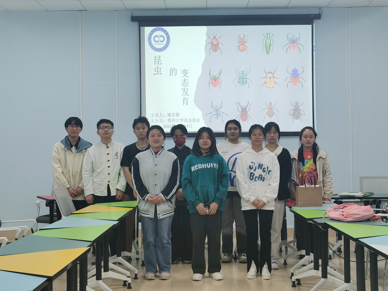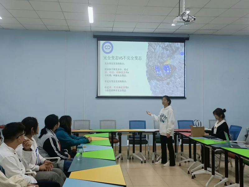活动分为昆虫文化科普与茶话会两部分,首先由昆虫协会进行昆虫文化科普,昆虫有三亿五千万年的历史,是世界上最古老的物种之一,现存种类有120多万种,种类丰富,行为独特,外形漂亮,具有极高的科研价值和科普价值。交流会开始,由施官银进行“昆虫的变态发育”主题分享。在昆虫纲的5种变态发育中,施官银重点介绍了昆虫的完全变态发育和不完全变态发育。紧接着由张钰杭进行“演员的诞生——昆虫的表演艺术”主题分享。昆虫的表演艺术说的就是昆虫的拟态。拟态是指动物模仿其他生物的一种高级行为,有多种分类,此次分享重点介绍了瓦氏拟态和波氏拟态。