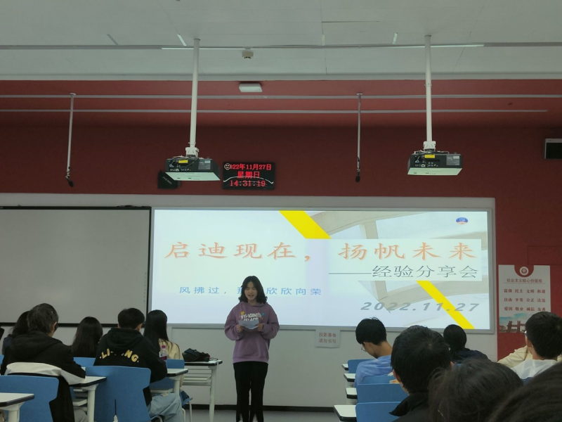 团委网站讯(记者 江沛昱 报道|摄影 汪兴雨)为激励广大同学的学习积极性,做好未来规划,发挥优秀学生代表示范作用,11月27日,新长城自强社于明俊楼138成功举办“启迪现在,扬帆未来”保研经验分享会活动。本次活动由三位获得推免研究生资格的学姐们向低年级同学们分享自己在保研路上的宝贵经验,积极为同学们答疑解惑。