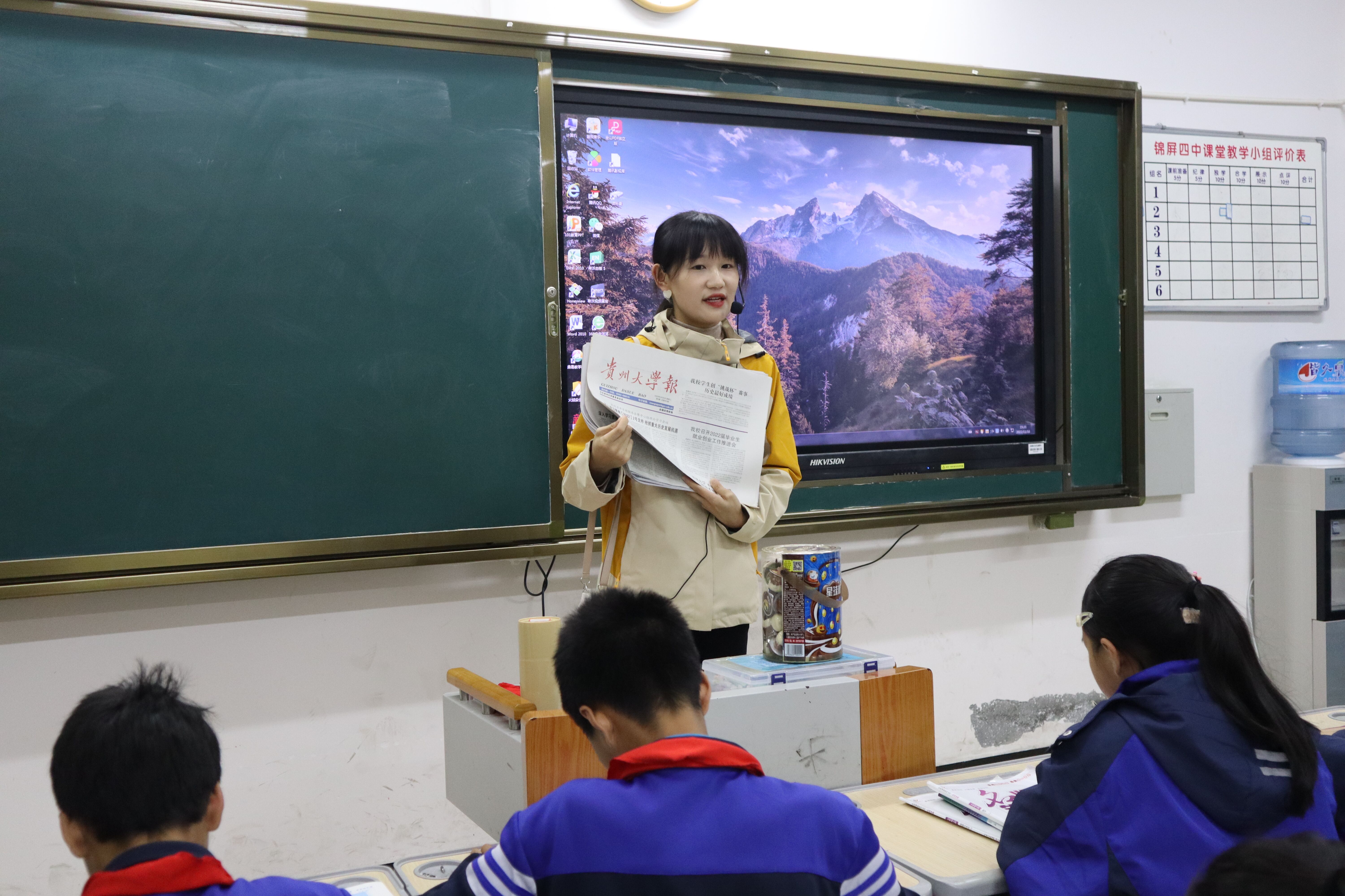 当谈及接收到报纸后的感受时,贵州大学第24届研究生支教团锦屏支队队长徐昕然激动地说道:“当看到眼前沉甸甸的报纸时,我真的非常感动。虽然我们现在不在贵大校园里,但是当它们如此真实地发放到同学们的手中时,那一刻,我真切地感受到贵大这个强大的后援家庭在支撑着我们。身处于这个‘种花时代’又是何其有幸!”和徐昕然一样,贵州大学第24届研究生支教团的老师们都立志做一名传声者,走出贵州大学,用自己的所学所知向学生们传递出他们的青年声音。