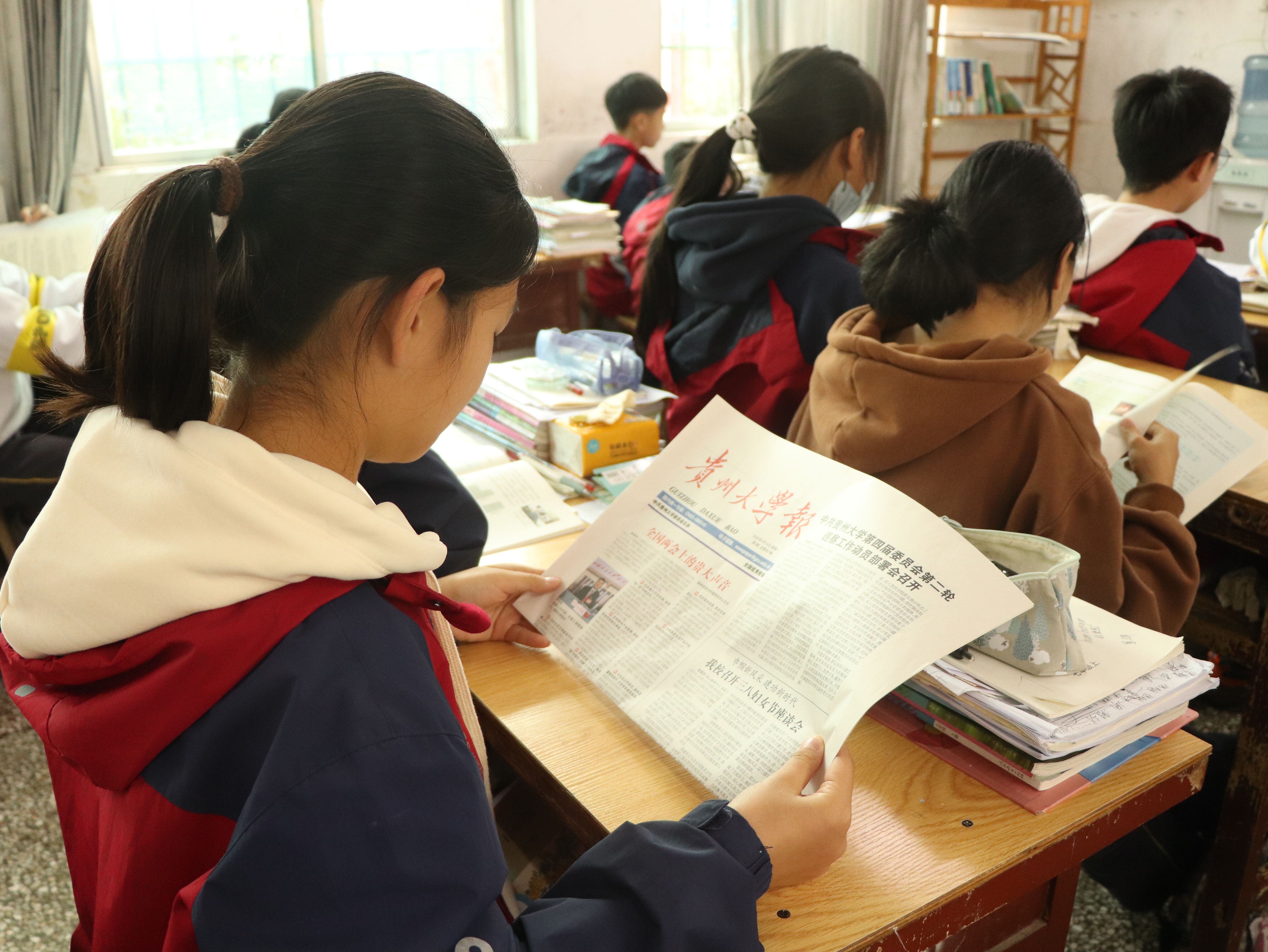贵州省黔东南州锦屏县第四中学和黔西南州贞丰县第二中学是贵州省易地扶贫搬迁点学校,也是贵州大学第24届研究生支教团对点服务学校,附近六个乡镇的学生在此上学。所发放的《贵州大学报》主要供学校七年级至九年级的学生阅读学习。