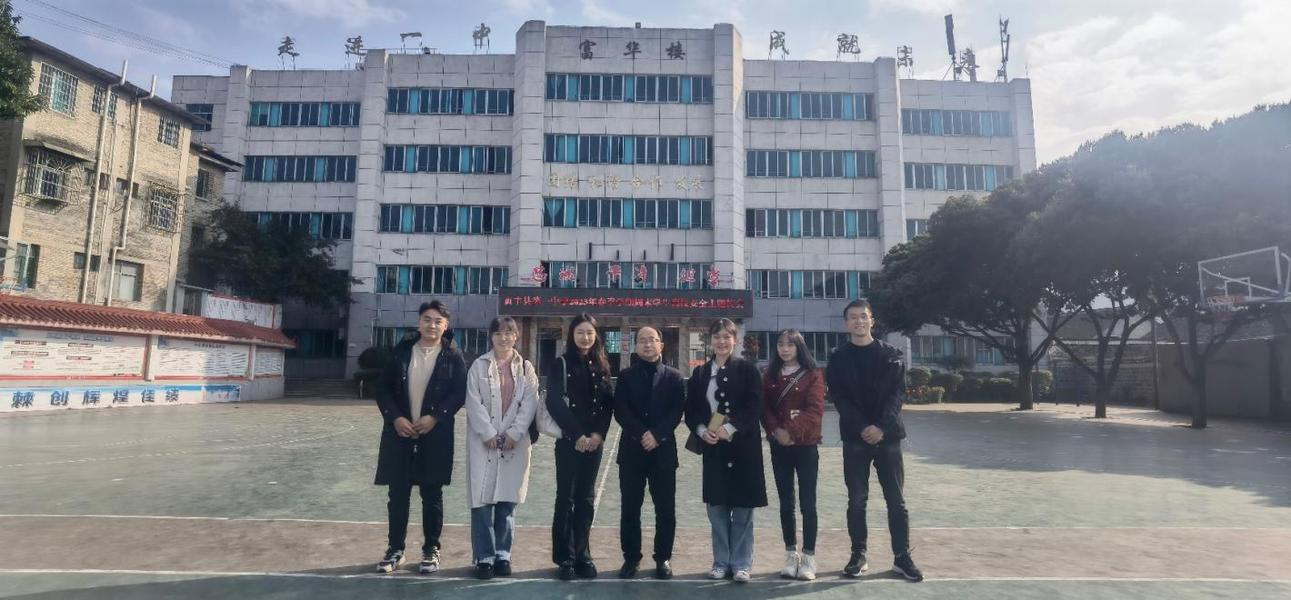 (图 贞丰县第一中学校长张荣生与贵州大学第24届研究生支教团贞丰支队成员在贞丰一中合影)