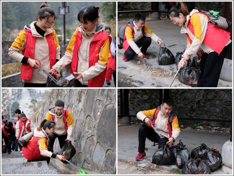 (图 我校第24届研究生支教团志愿者对文昌塔景区内的卫生环境进行清扫)