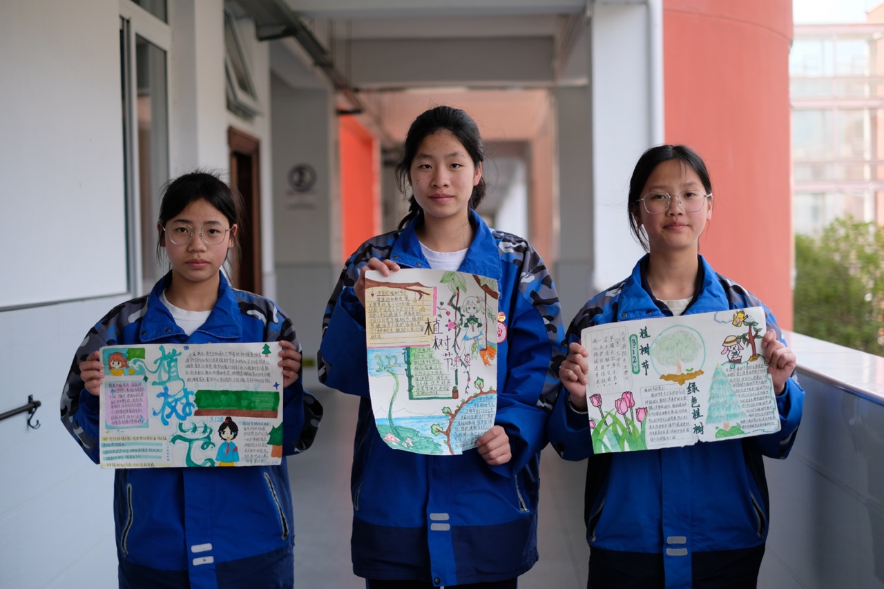 (图 九年级学生代表绘制“植树节”主题手抄报)