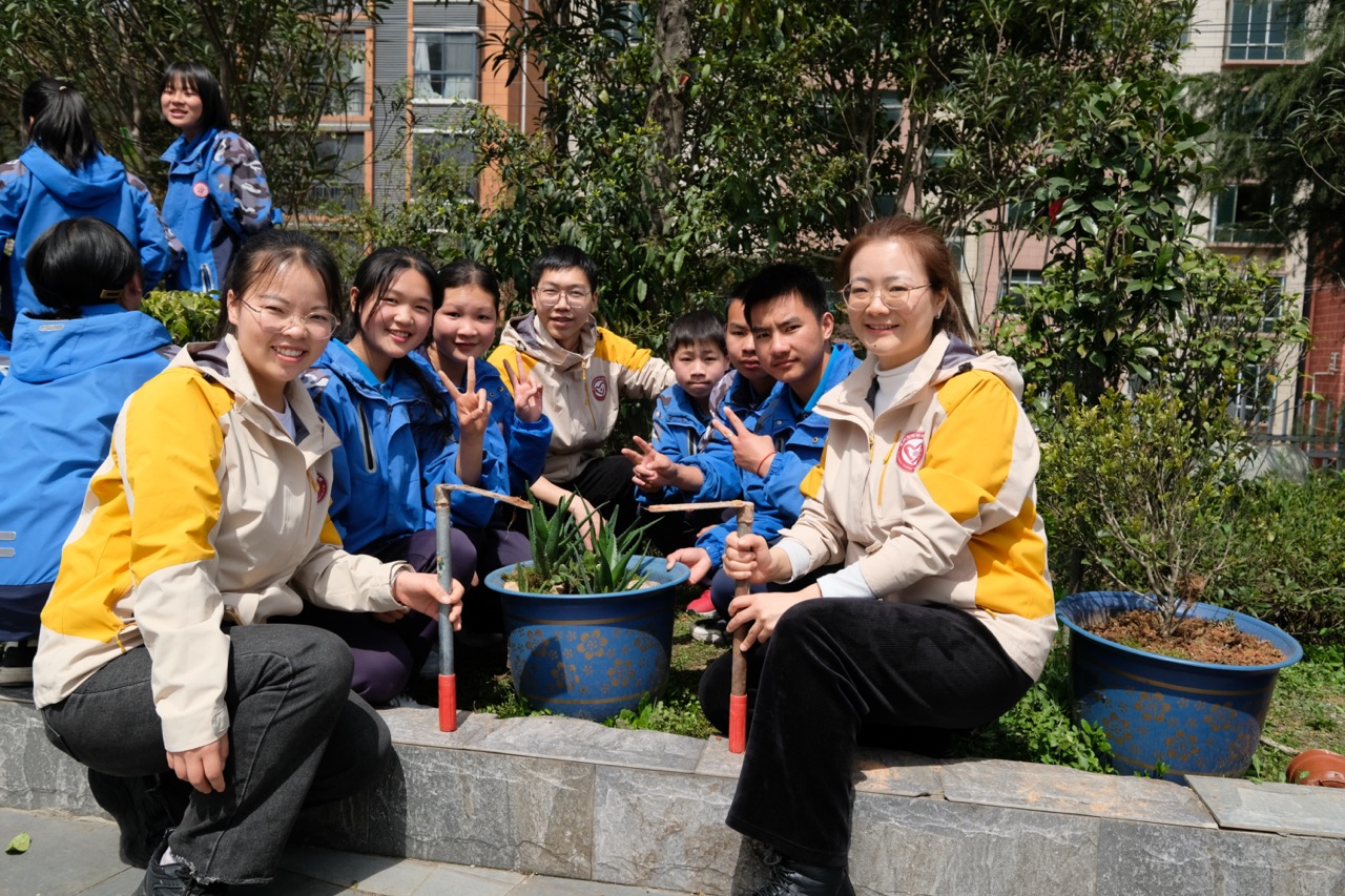 我校第24届研支团锦屏支队陈珍组织同学们通过在校园内开展装扮植物角、为专属树木起名字、装扮花园里的树木等形式,使广大师生了解到植物特性,提高学生的环保意识,培养学生的环保责任感。为校园增添了春天的生命力,传递“珍惜绿色 爱护环境”理念。