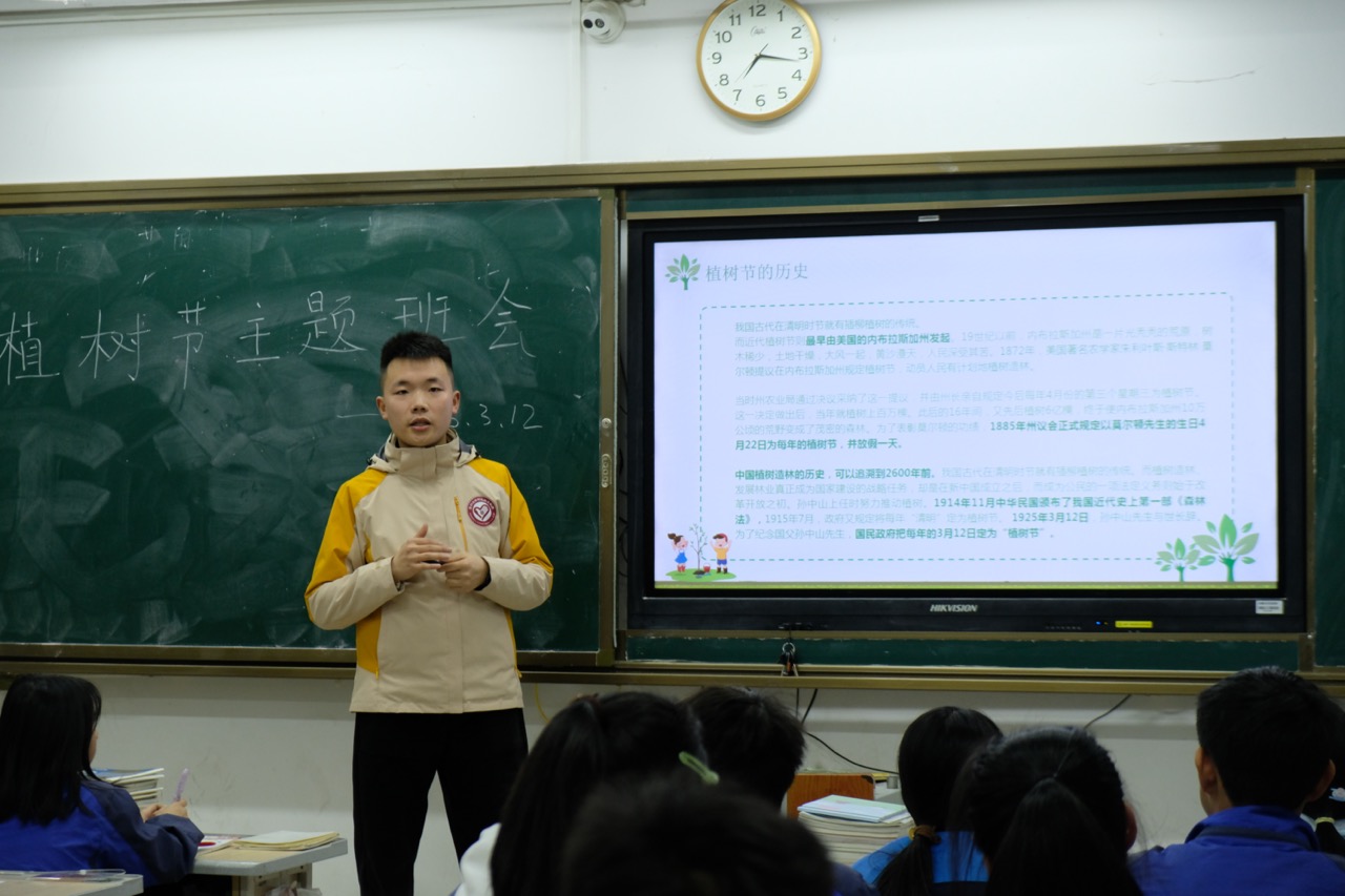 (图 我校第24届研支团锦屏支队李雨涵开展“植树节”主题班会)