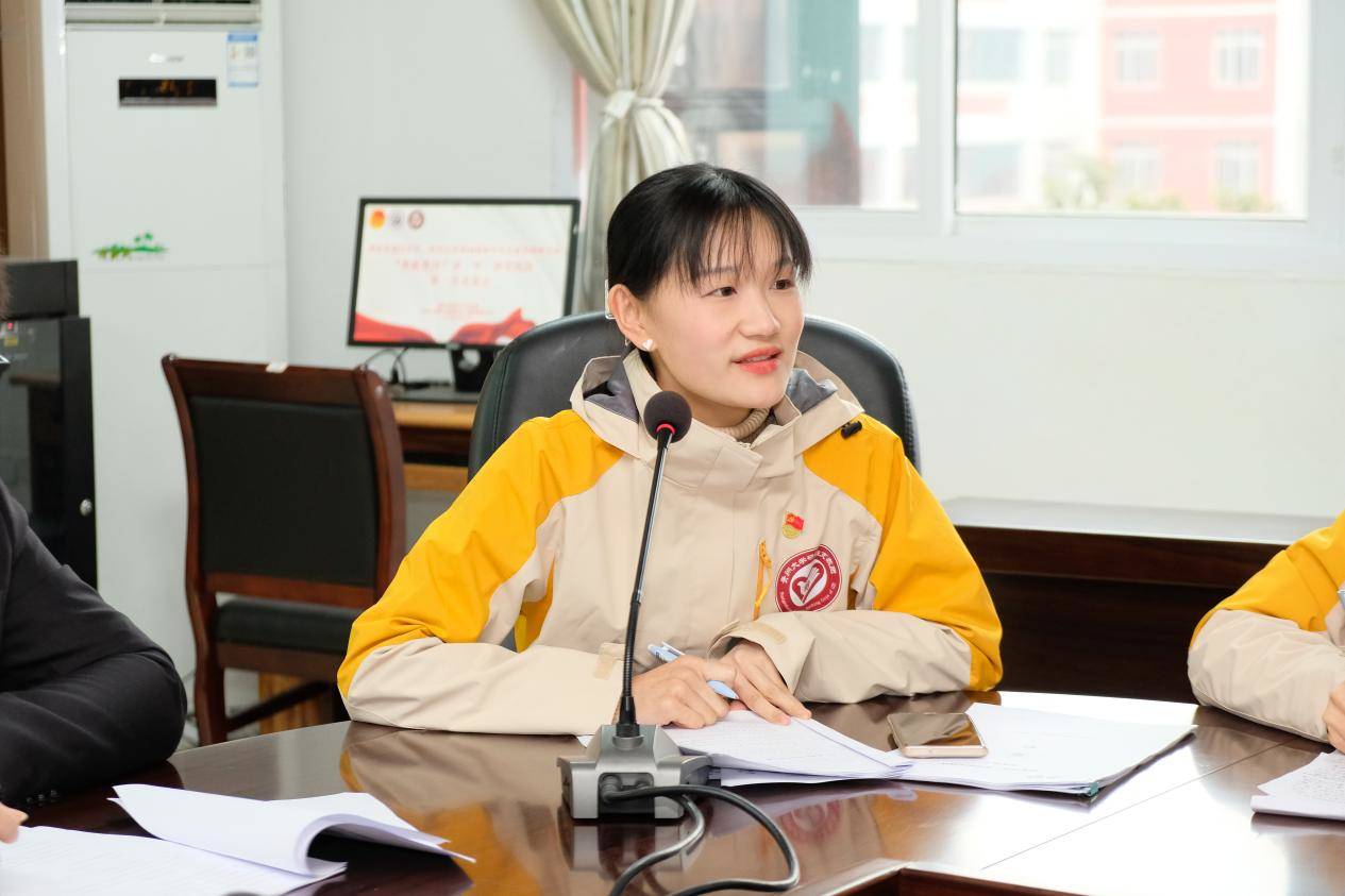 会上,我校第24届研支团锦屏支队队长徐昕然介绍了“贵薪青传”讲学研实践队品牌项目。她指出该项目是我校研支团在服务地建立的学生组织,采取党员带团员、团员带队员的“三员”模式(1+2+2),围绕讲、学两方面内容共同开展常态化学习活动,结合我校研支团自身实际情况和特长,做好服务地优秀青少年入队、入团、入党等工作。