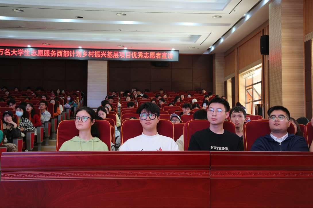 本次宣讲会由陆佳俊支持,大会伊始,华中农业大学研究生支教团李博涵、普安县西部计划志愿者寇珺、水城区西部计划志愿者赵阳先后分享了自己在西部计划志愿服务中的经历,讲述了他们在基层服务中的成长与感受,勉励同学们积极为祖国的西部建设和学习教育贡献力量。