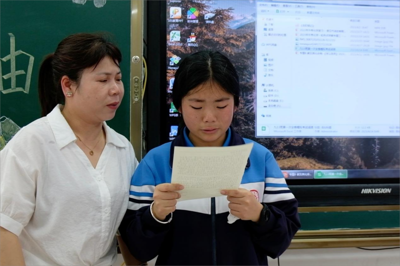 (图 学生与家长一同在主题班会中分享感恩书信)