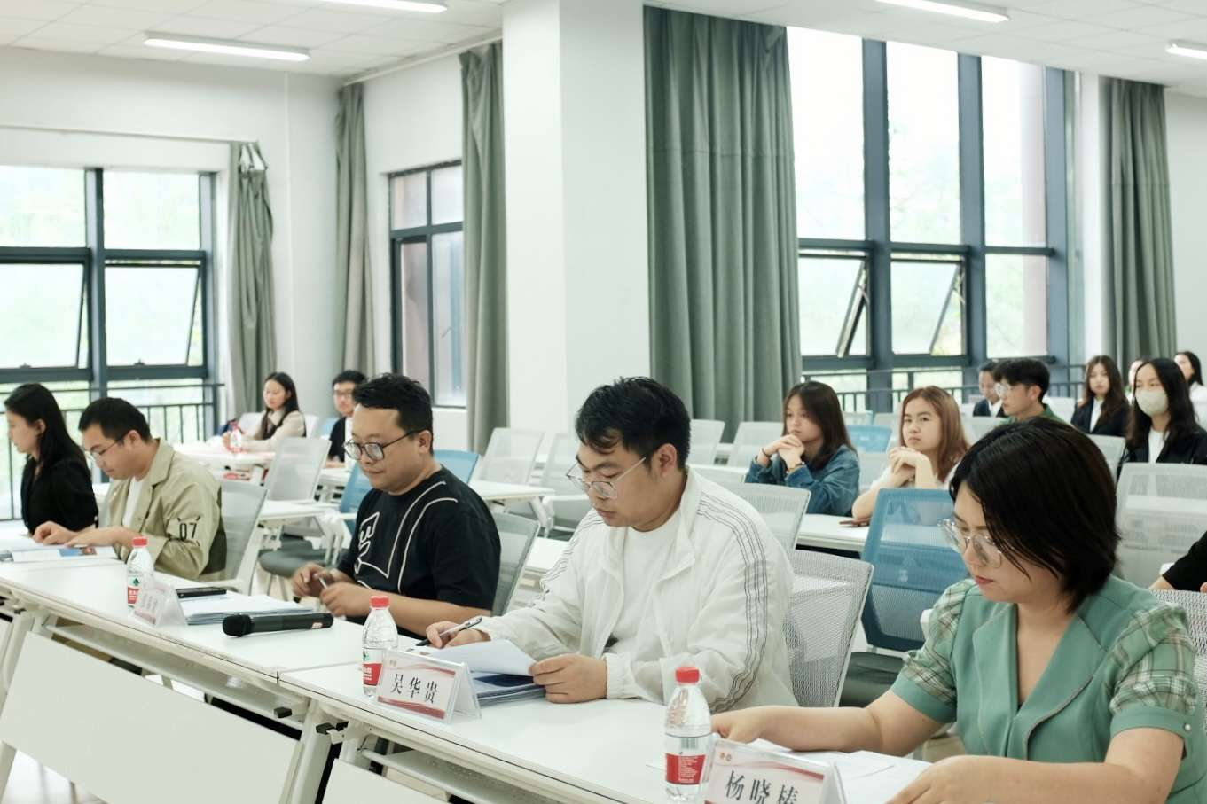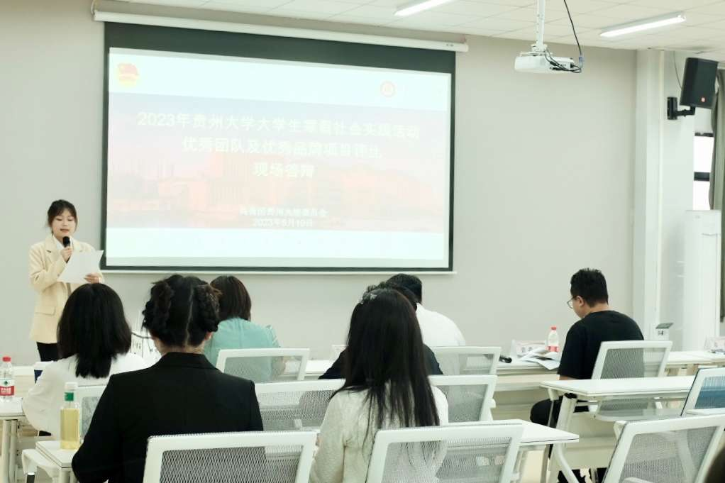 团委网站讯(记者 申雪 报道 | 摄影 刘喜之)5月19日中午,我校2023年大学生寒假社会实践活动优秀团队及优秀品牌项目评比现场答辩在我校西校区雅文楼217B成功举行。团省委宣传部张淼绪、志愿者行动指导中心权益维护科吴华贵、花溪区团委副书记葛峰、校团委副书记杨晓椿等出席本次活动。