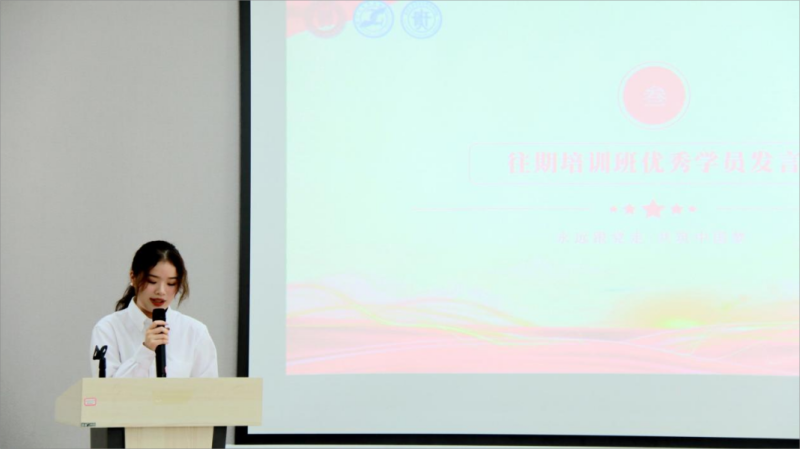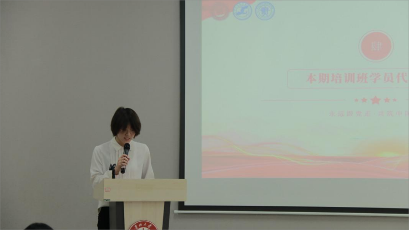 本期培训班学员代表侯宇昕发言,分享了她进入校会以来的一些收获和感想。