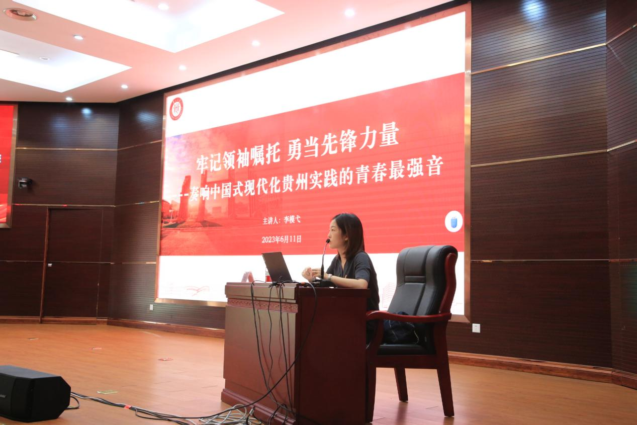 李模弋带领学员们回顾百年时光中优秀贵州青年的事迹,讲述了贵州的百年巨变。并鼓励大家要心怀理想,扬起青春远航之帆,要脚踏实地,迈出青春奋斗的步伐,要坚守价值追求,将小我融入大我,争做新时代新青年。