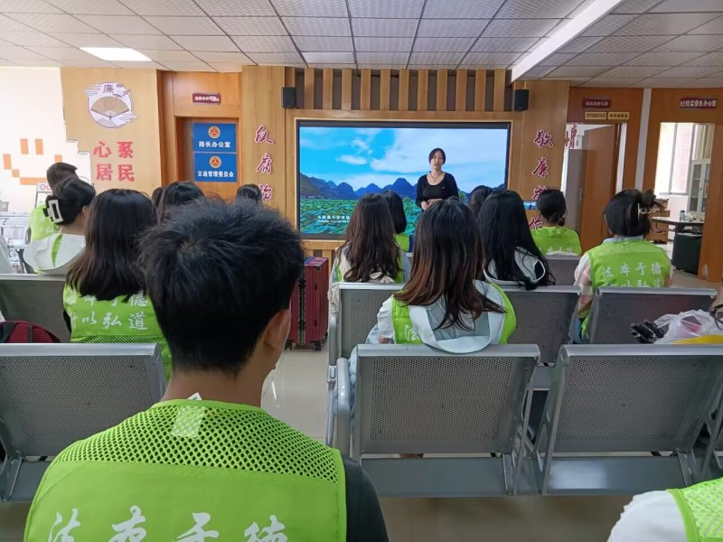 下午实践队到达宁西街道景宁小区,宁西街道及谐美社区与实践队开展座谈会。谐美社区播放了镇宁自治县的宣传片,通过宣传片的播放让实践队成员对当地有基本的了解和认识,为之后的实践开展做好铺垫。