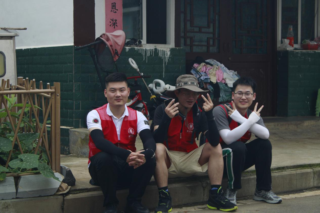 (图为实践队员调研后在村民家门口休息)