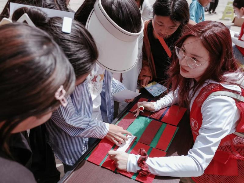 (图为实践队员开展知识撕撕看小游戏)