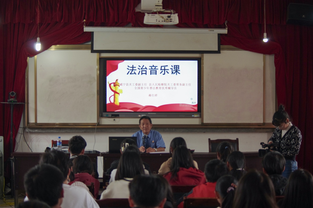 (图为威宁县检察院原副检察长蒋仕祥讲授《法治音乐课》)