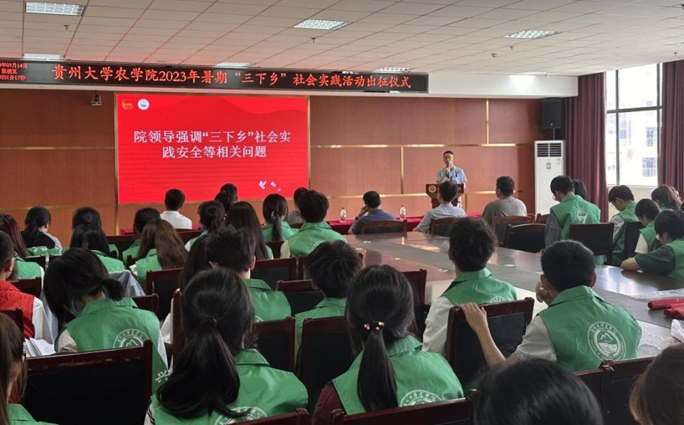 团委网站讯(记者鲁睿涵报道摄影)7月14日中午,农学院2023年暑期“三下乡”社会实践活动出征仪式在崇学楼339会议室举行。农学院党委书记杨刚出席,15支“三下乡”实践队指导老师、队长、实践队代表成员共80余人参加出征仪式。会议由农学院党委副书记王明主持。