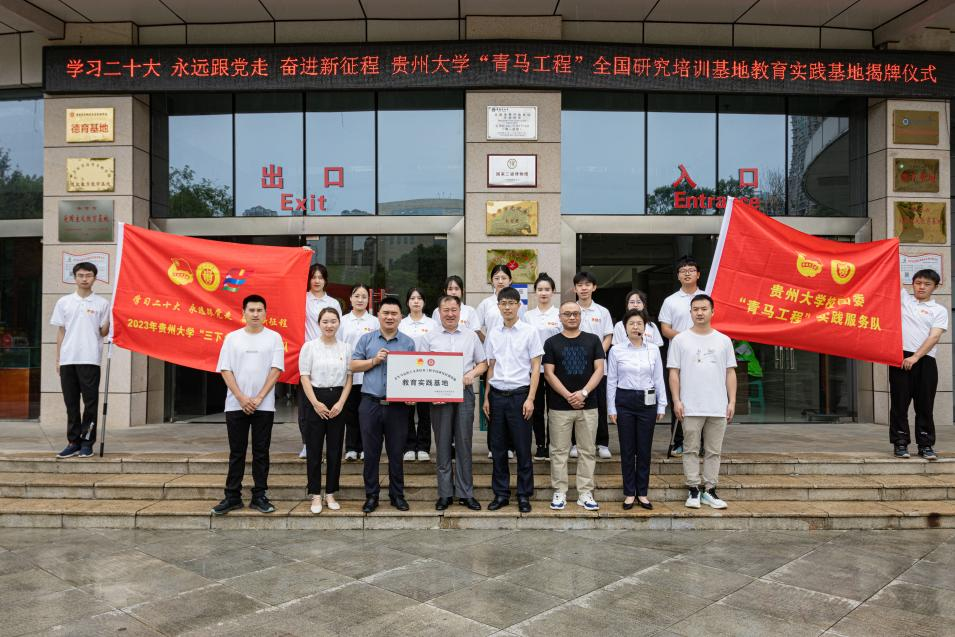 团委网站讯 7月18日下午,贵州大学在毕节市博物馆成立“青年马克思主义者培养工程全国研究培训基地教育实践地” 。团毕节市委副书记马永江、毕节市博物馆馆长向鹏、校团委副书记宋洪庆出席揭牌仪式,贵州大学团委“青马工程”实践服务队全体成员、毕节博物馆相关工作人员参加。