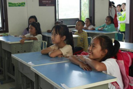 (图为化屋小学的同学们聆听宣讲)