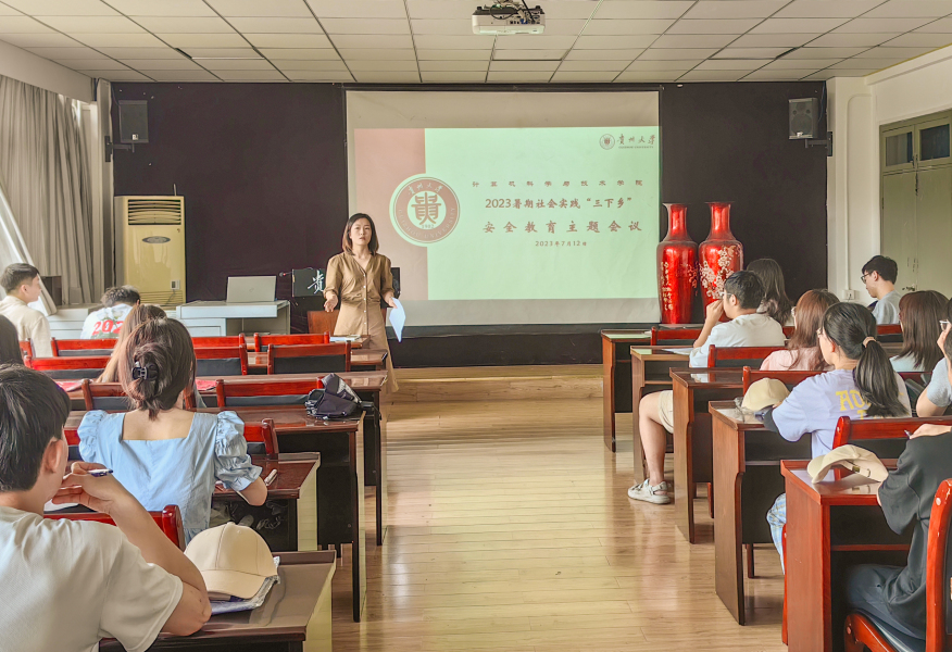 团委网站讯(记者刘梓宸麦子杰报道│摄影 李佳一 王兴峰)逐梦新时代,奋斗新征程。7月12日中午,贵州大学计算机科学与技术学院2023年“三下乡”社会实践活动出征仪式暨安全动员会议在东校区博学楼701会议室举行。学院三下乡各团队学生代表30余人参加,会议由学院团委书记李模弋主持。