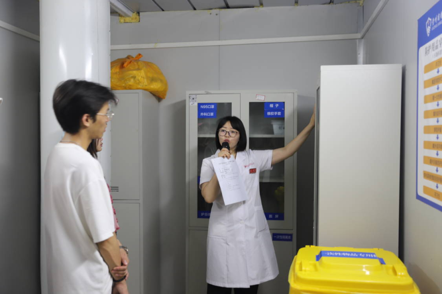 在医院相关负责人带领下,队员们重走了一次医护人员都要穿梭其中的病区,复杂谨慎的消杀程序、紧张有序的日常工作、对病人从身体到心灵的全面照顾,每一个过程都是对人民生命的小心守护,对医护人员使命担当的身体力行。