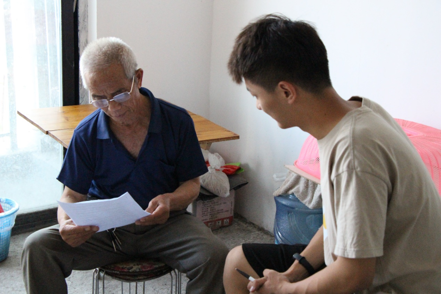 随后,乡村振兴博士青年突击队、“旅文筑梦”实践队分为四组前往金景湾社区、水景湾社区以及珉城社区开展入户访谈,围绕搬迁后生计情况及各项影响因素开展问卷调研。调研初步发现,搬迁后随着政府职业技能培训、岗位推荐等扶持措施,搬迁居民收入水平提高,相比原住地,迁入社区生活环境、生活质量得到大幅度提升,教育、医疗等方面更加便利化。