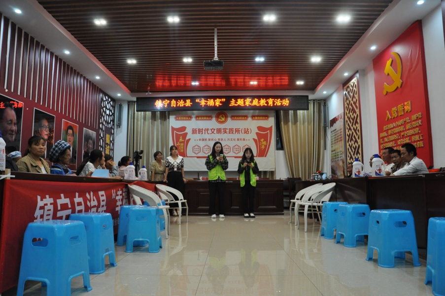 团委网站讯(记者莫振陈学龙报道|摄影 “格致”思政社工服务队)7月18日,镇宁自治县妇女联合会、谐美社区居委会联合我校法学院“格致”思政社工服务队的暑期“三下乡”实践的师生在景宁小区开展“幸福家”主题教育活动。我校法学院教授崔永霞老师主讲,大学生实践队员共同宣讲,活动由谐美社区驻村第一书记赵静主持。
