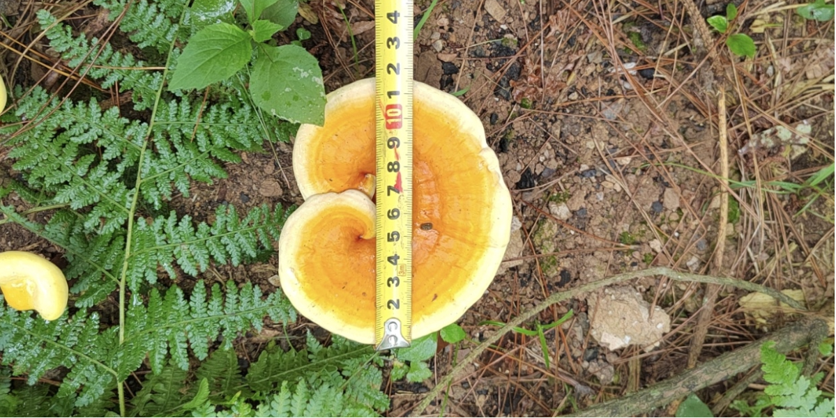 最后,为了更好地了解灵芝的培育及生长情况,16名实践队员分为了四个小组,每组在灵芝种植区内分别在山脚、山腰、山顶选取三个10m×10m的样方,统计各样方内灵芝的接种数、存活数等生长指标以评估当下灵芝生长态势。
