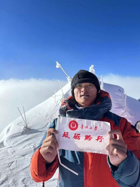 谈及参加登顶队伍的初心时夏抵健表示,“我在贵州大学户外运动专业课程中接受了专业的登山理论与实践技能,专业课老师们也经常向我们讲述在哈巴雪山、四姑娘山、慕士塔格峰、珠穆朗玛峰等地的攀登经历,这些都令每一位户外运动方向的学生格外向往,也促使我萌生了征服高海拔山峰的想法。此次顺利登峰,对于我来说是一种圆梦。”