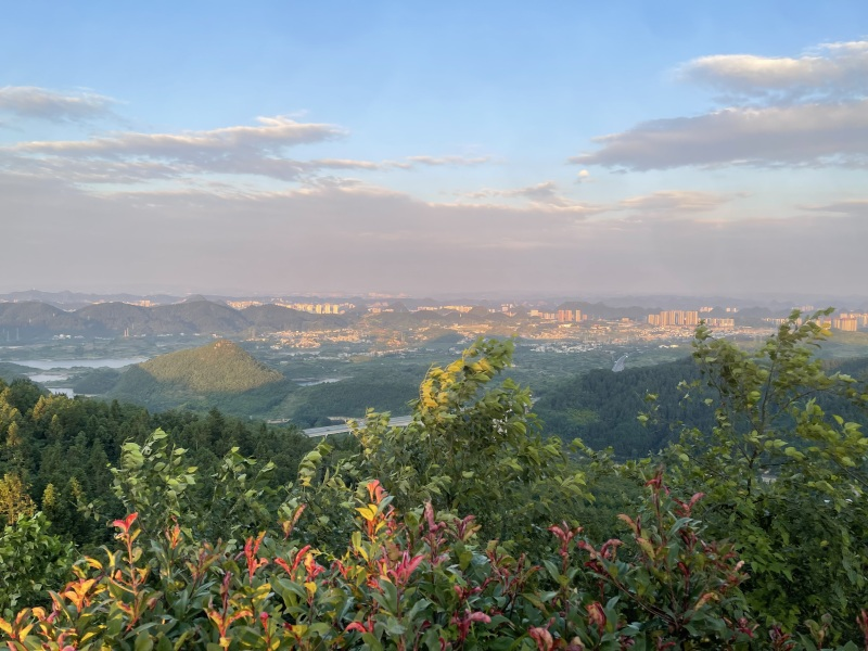 当天下午,在当地茶农的带领下,实践小队成员攀上九龙茶山,领略茶峰之美。一面是城市的碎片剪影,一面是日落山之幽,水风清,晚霞明,乡村兴。