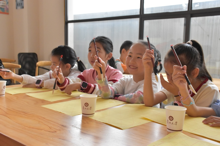 秉持“寓教于乐”的授课原则,学生们在各具特色的趣味课堂中学习新知,发现知识的魅力,找寻学习的乐趣。书法课堂上,当志愿者在黑板上运用提、按、顿、挫等书法握笔技巧写出由变化多端的线条勾勒而成的汉字时,学生们也在聚精会神地聆听着讲解,迫不及待地拿起手中的毛笔跃跃欲试,时间沉淀下的中国书法艺术深深吸引着求知若渴的学生们。