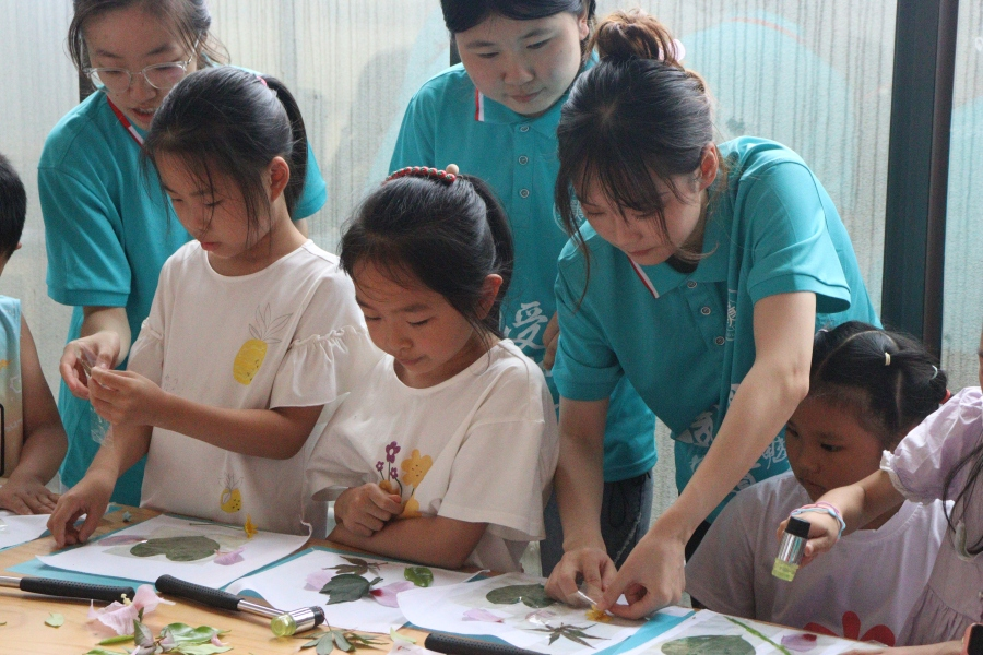 7月19日至7月25日,各特色课程教学工作均在顺利进行中,特色课程教学坚持打造寓教于乐的优质课堂,在趣味教学中将知识传递。其中,来自“感受非遗魅力”工作室的志愿者化身能工巧匠,带领学生们实现了由非遗扎染材料到传统手工艺品的完美转变,向学生们展示了中国传统非遗文化的独特魅力。