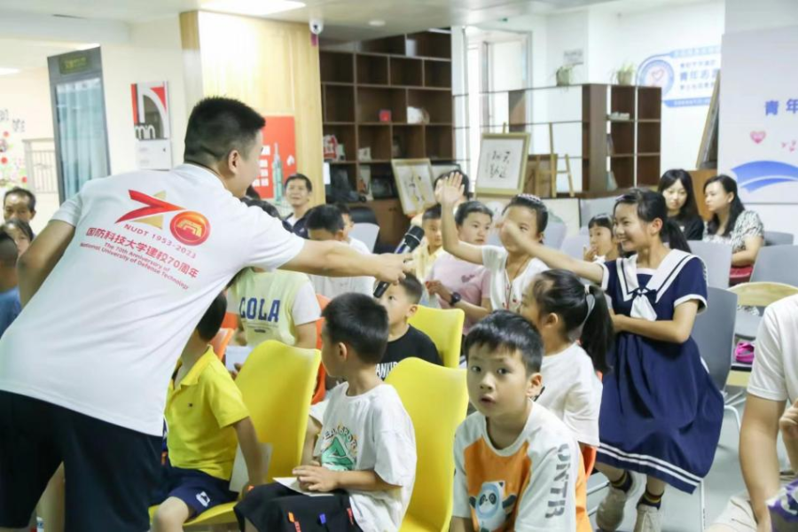团委网站讯(记者路夏袁锐王迪黄菲靳佳慧报道|摄影 王迪 陈戈奕)为弘扬奉献、友爱、互助、进步的志愿精神,落实共青团“伙伴计划”,促进高校与社区协调育人模式的“基地化、项目化、常态化、多样化”,7月14日至29日,由马克思主义学院溪山阅湖志愿服务队主办、国防科技大学研究生暑期社会实践队协同开展的“大手牵小手 共建社区夏令营”系列社区志愿服务活动在贵阳市花溪区阳光街道学士社区举行。高校大学生青年志愿者以多彩博学课程助力启蒙,多元协助守护童心,活跃基层青年志愿者组织,共建“育人共同体”。