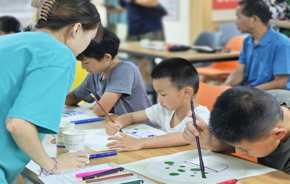 童心彩墨,书香沁润。我校美术学院、资源与环境学院及马克思主义学院志愿者分别于上午、下午、晚上开展“彩墨铜钱草”“环境与环境保护”“读书分享会”活动。在活动中,通过让社区孩童做、画、写、读,进而使其切身感受到彩墨浓淡的变化,学习到了垃圾分类知识、感悟到了阅读的魅力。