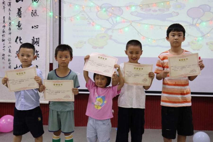 趣味运动,展现风采。志愿者同学们带领小朋友们实践操作非遗手工艺草木敲拓,下午组织小朋友参与趣味运动会,晚上举行夏令营结营晚会。该活动在帮助小朋友们增进对中国传统文化了解的同时,利用运动会培养了他们的团队协作意识。最后,结营晚会鼓励社区小朋友积极报名节目表演,并于晚会结束向每位参与此次夏令营的小朋友发放奖状和奖品,旨在提升孩子的自信心,鼓励孩童勇于展现自己,亮出风采。