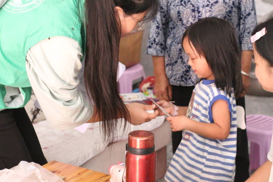 团委网站讯(记者 张可欣 报道|摄影 秦代欣)7月22日,筑梦童心实践队在排冗村妇联主席的带领下,走访调研了十余户困难留守儿童家庭,并为她们送上一些学习用品和生活物资。这些儿童大多是父母一方去世,另一方为了维持生计去外省打工,一年只回家一次,由爷爷奶奶在家照看。每当实践队成员问起她们是否想念父母时,她们总是毫不犹豫地回答,当然想。