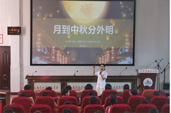 团委网站讯 为加强弘扬爱国主义精神和中华民族优秀传统文化,丰富国庆、中秋节日文化活动,值此国庆中秋双节之际,贵州大学第25届研究生支教团贞丰支队成员在贞丰县第二中学开展“情满中秋 礼赞国庆”主题教育活动。