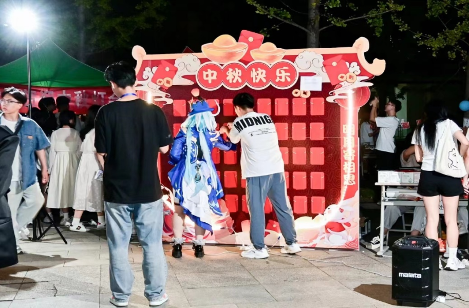 伴随花灯展览,周围还设立了与中秋有关的小游戏供大家参与其中,有海底“捞”月、飞箭投壶、与月同游、流星逐月、烘云托月六个小活动,让学子们与月相伴,在万盏花灯映照下,收获欢乐。游戏参与处给同学们提供了盖章卡,完成活动后可集章集戳,集齐五个印章即可参与红包墙抽奖,向众人分享好运。此次活动让同学们感受到中秋佳节的温馨与幸福。