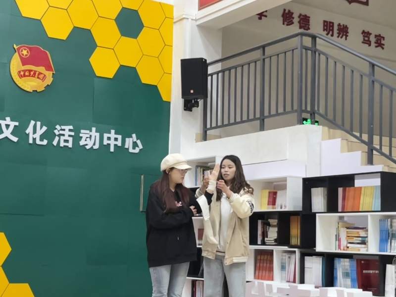(张梦璐向同学演示海姆利克急救法的正确操作方式)