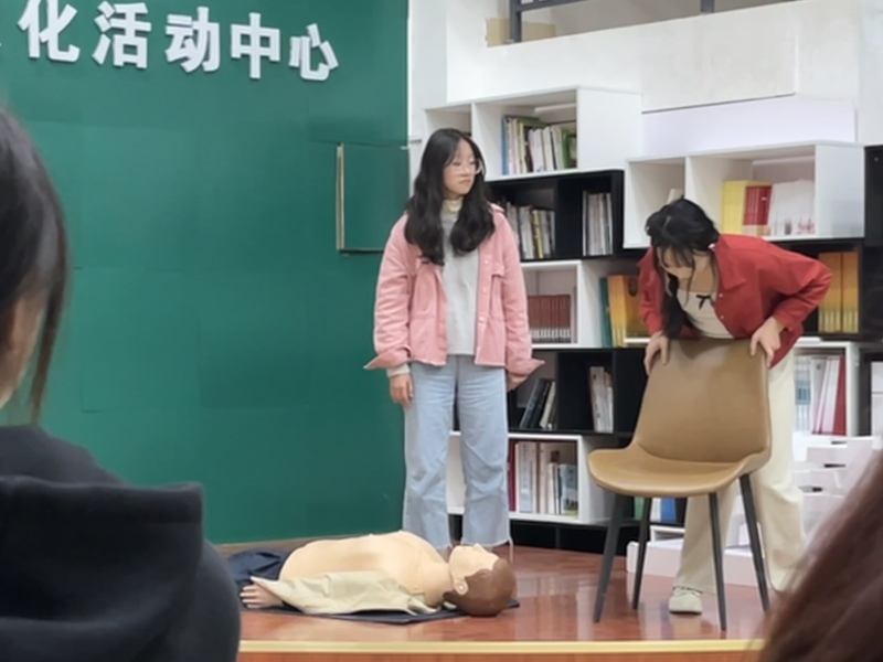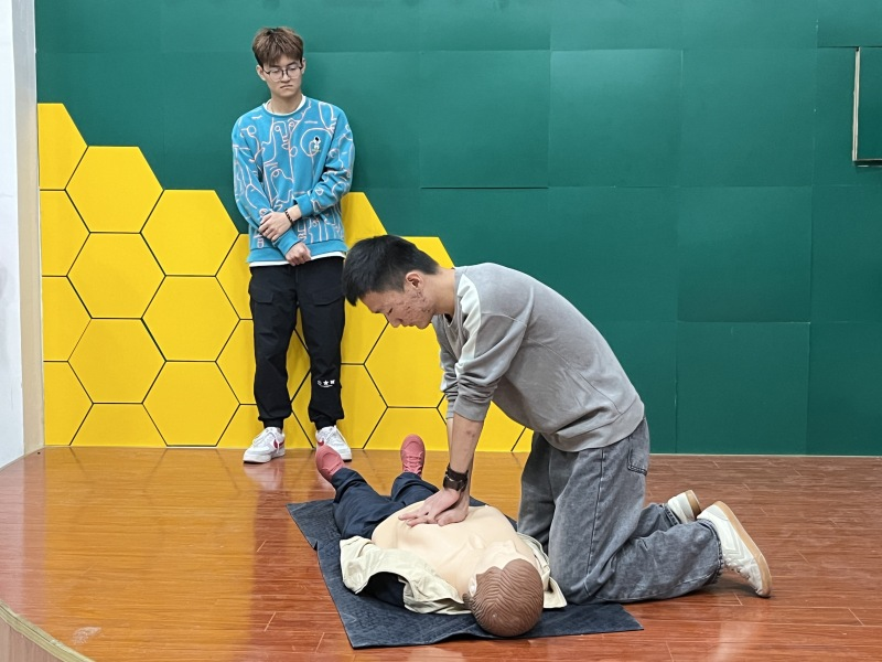 在培训中,培训人员采用了理论知识传授和现场实操相结合的方式,向同学们讲授了包扎知识、心肺复苏和海姆利克急救法的急救实操技能。培训结束后,同学们进行了急救实操,完成了创伤救护、止血包扎、心肺复苏和海姆利克急救法的模拟演练。
