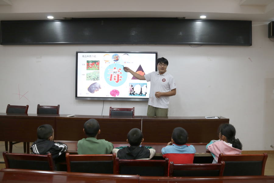 禁毒课堂上,研支团成员刘梓宸播放了毒品预防宣传短视频,详细介绍了毒品的定义、种类、危害及青少年如何预防毒品等方面的知识。通过播放禁毒宣传片、讲解真实案例、互动问答等方式,引导孩子们如何识别、拒绝和防范毒品诱惑,增强自我保护意识和能力。同时,志愿者们以案例为依据,告诫孩子们交友要慎重,拒绝陌生人的赠品,要远离毒品,鼓励他们争当禁毒宣传员,向身边的家长和朋友宣传禁毒知识。