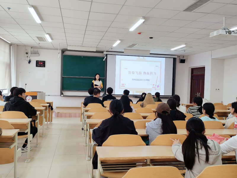 团委网站讯(记者 郭珊珊 报道|摄影 王玉)为进一步普及成分献血知识,加强高校学子对成分献血的认知,11月2日下午,由贵州省血液中心献血服务二科与我校红十字会联合举办的“青春飞扬,热心担当”成分献血主题宣讲活动在贵州大学西校区明俊楼335教室举行。我校红十字会特别邀请到贵州省血液中心献血服务二科副科长谭畅和杨珍医生参加此次宣讲活动。