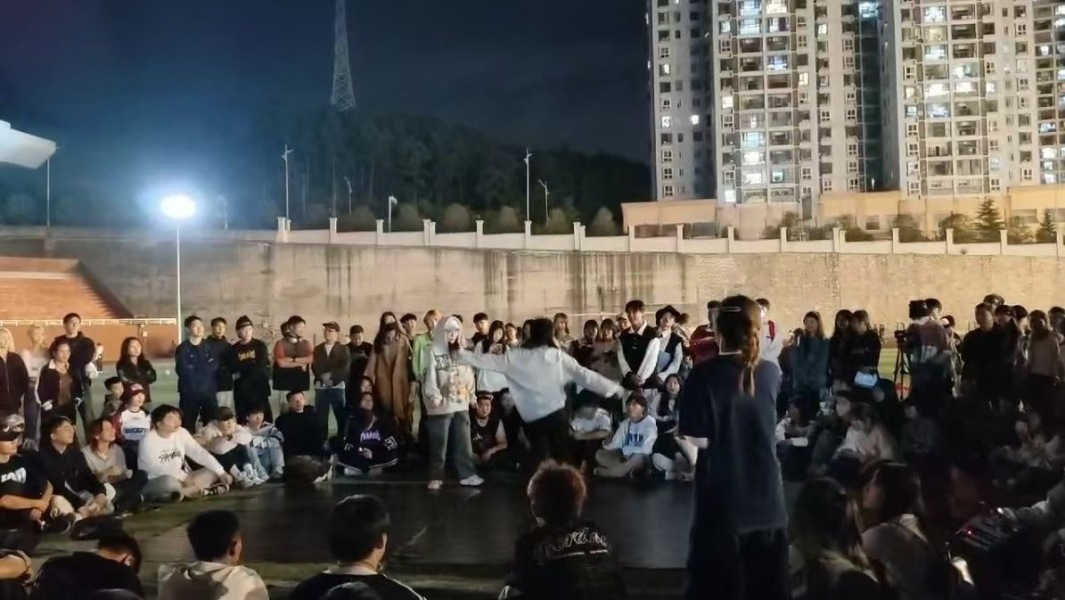 路演结束后,“GD”街舞社队员们与其他高校学生进行传统街舞项目比拼,舞者展示了他们不同的舞蹈技巧和创意。比赛精彩不断,现场观众掌声此起彼伏,数十轮比拼后,结果难分胜负。
