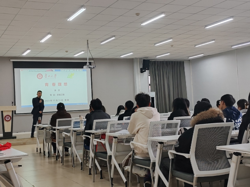 团委网站讯 为提升同学们创新创业能力,促进优质就业,11月14日中午,由共青团贵州大学委员会主办的“就业大讲堂·青年榜样进校园”第一期宣讲活动在我校西校区雅文楼举办。本次分享嘉宾为贵州大学在读博士生涂汉。