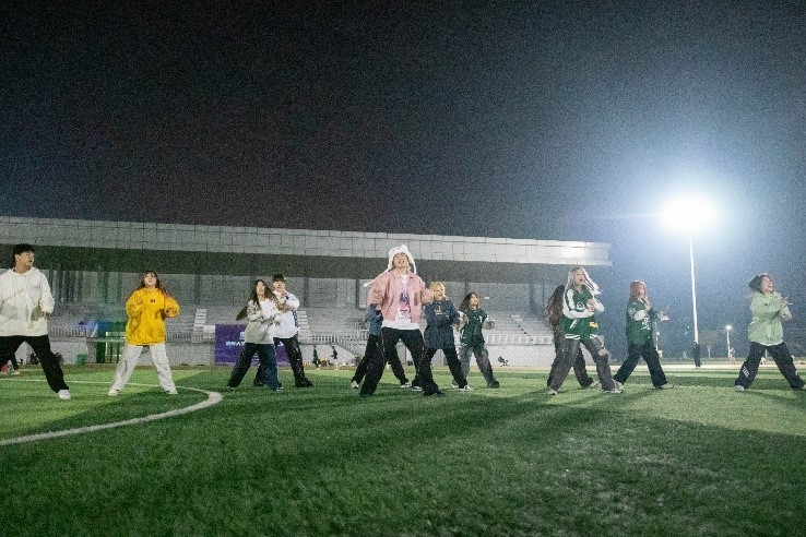 汇演在充满热情和活力的《That’s my girl-ive》中拉开序幕,经典和潮酷碰撞出的舞蹈《uh oh-(G)l-DLE》让人眼前一亮。随着一首又一首的舞蹈表演,观众被点燃热情,跟随音乐节奏一起律动和呐喊,足球场响起阵阵掌声。