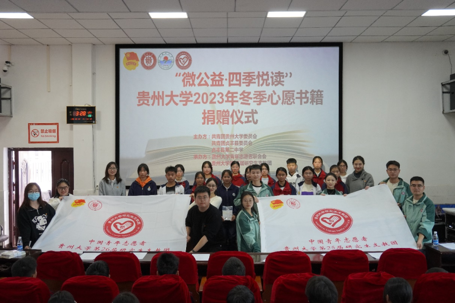 下午,“微公益·四季悦读”贵州大学2023年冬季心愿书籍捐赠仪式在贞丰县第二中学银海楼五楼会议室举行,宋洪庆带领师生一行将此次收集的“微公益·四季悦读”冬季书籍发放给同学们。据悉,“微公益·四季悦读”公益赠书活动由贵州大学学子认领同学们的心愿书籍,实现一对一个性化赠书。截至目前,共计捐献图书超1000余册。
