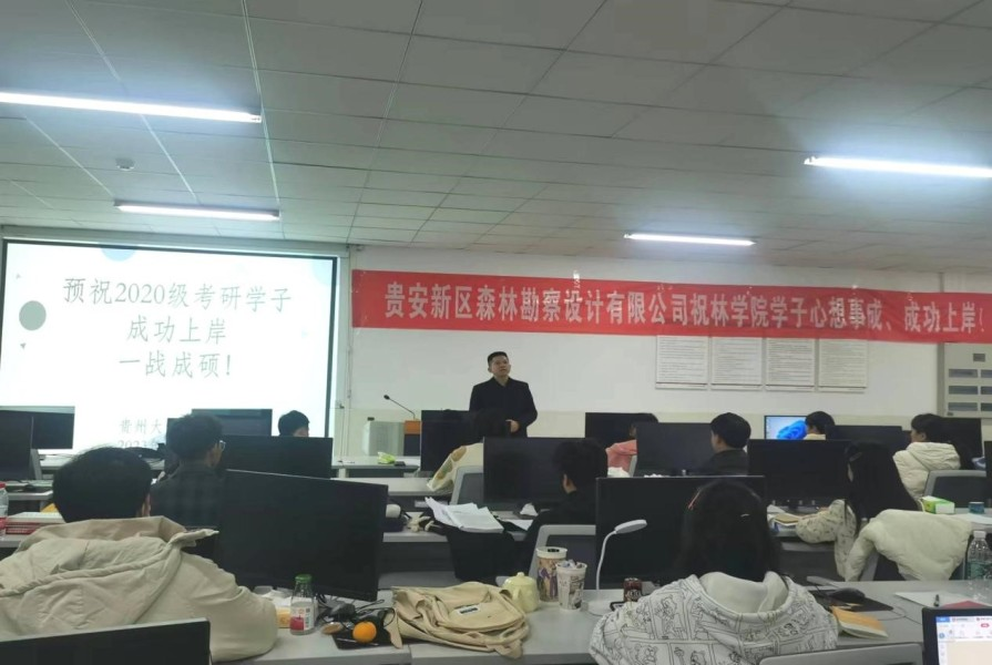 团委网站讯(记者 文源馨 报道 摄影)为帮助林学院考研学子稳心态、增信心、添动力,12月12日下午,我校林学院院联合贵安新区森林勘察设计有限公司开展了考研“冲刺”助力活动。校党委常委、副校长陈祥盛,贵安新区森林勘察设计有限公司林业部经理朱来来,项目经理欧启善,林学院党委书记唐飞虎,院长王德炉,院党委副书记陈健,副院长粟海军以及各专业教师代表、班主任、辅导员及全体考研学子参加此次活动。