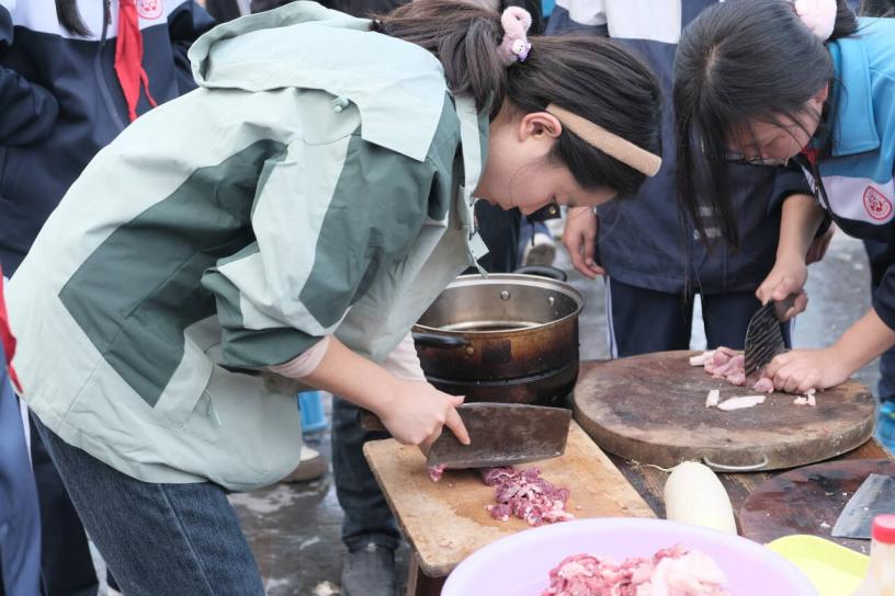 研支团成员积极融入学生团体,做好安全维护、选材备菜、烹饪制作等工作,指导同学们制作美味菜肴,合力完成班级比赛,并一起感受侗年热闹氛围,培养团结合作精神。