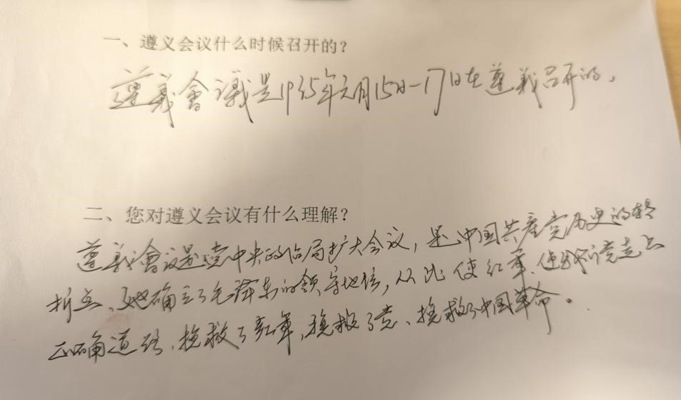 在杨爷爷填写问卷时,对于遵义会议的称呼使用了“她”而不是“它”,这引起了一位小队成员的注意。